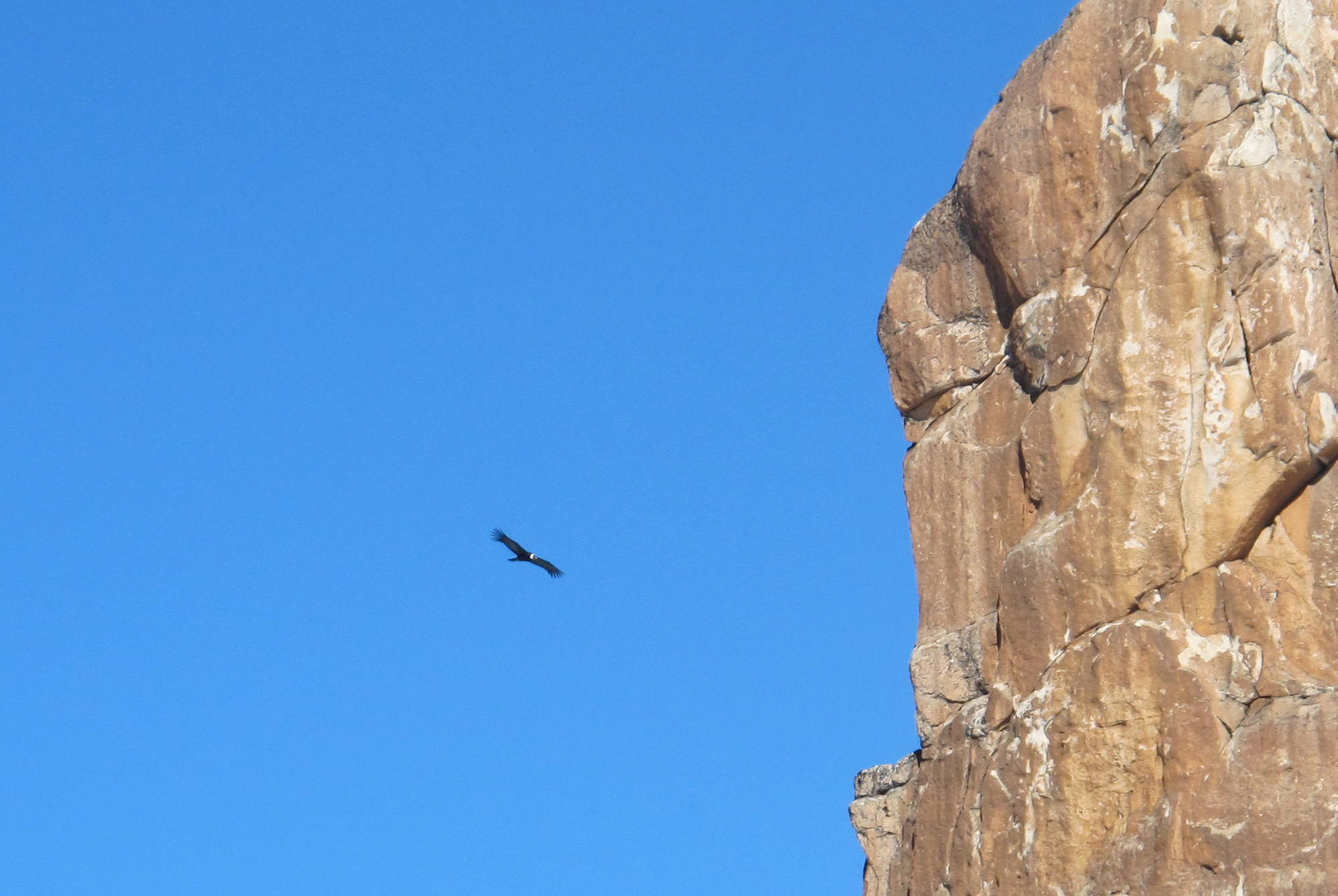 So 15 feet below the summit I skied a traversy south line down to the valley. It was soft and nice so I returned via another way and enjoyed it again. Midway up I finally saw my first condor, it was great to watch as it floated effortlessly on the thermals. It looked pretty large, bald eagle size for sure maybe a touch bigger. Looking at my photo maybe quite a bit bigger.